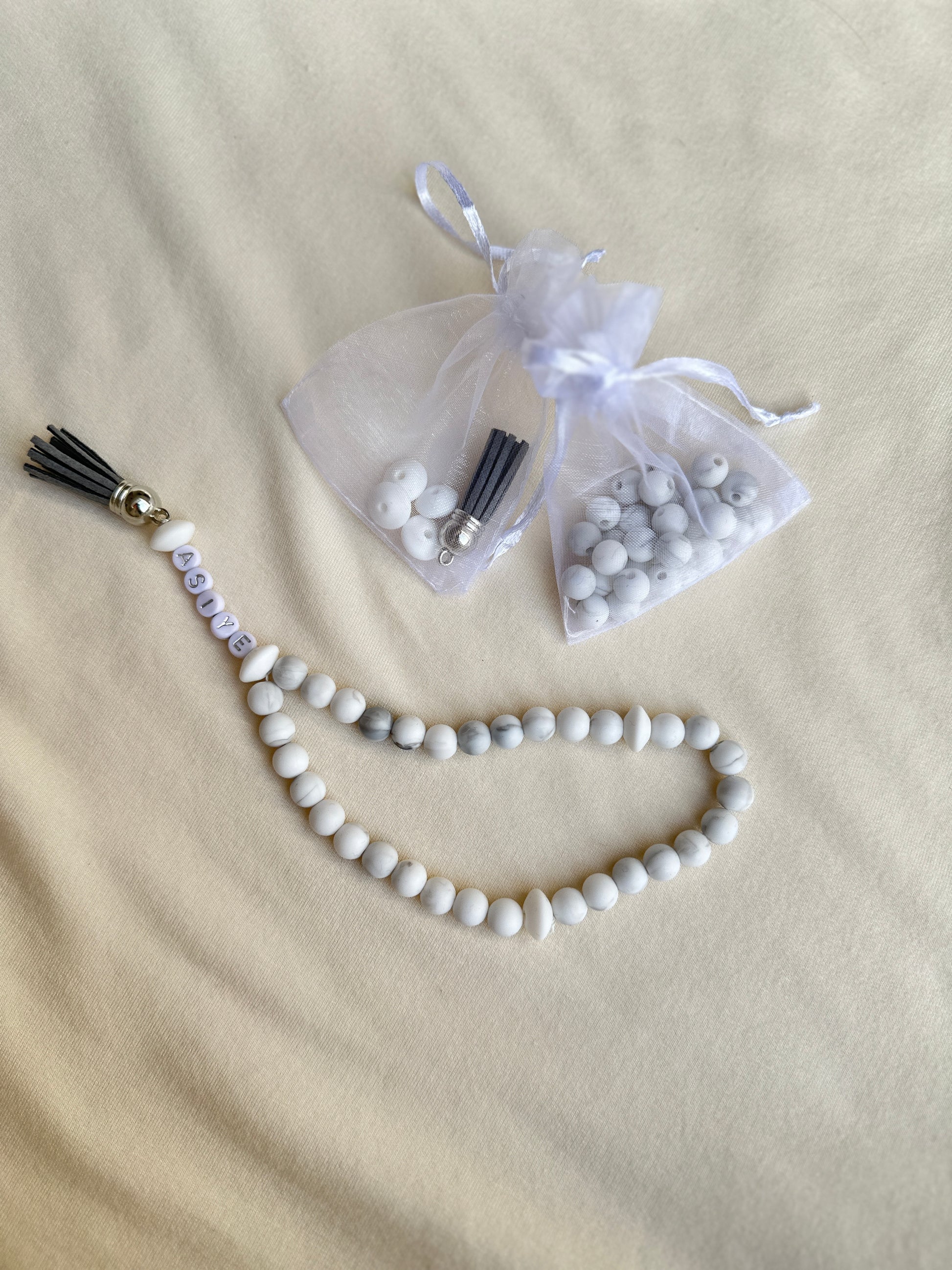 - Personalisierbar: Machen Sie den Tesbih einzigartig durch die Verwendung von Buchstabenperlen.