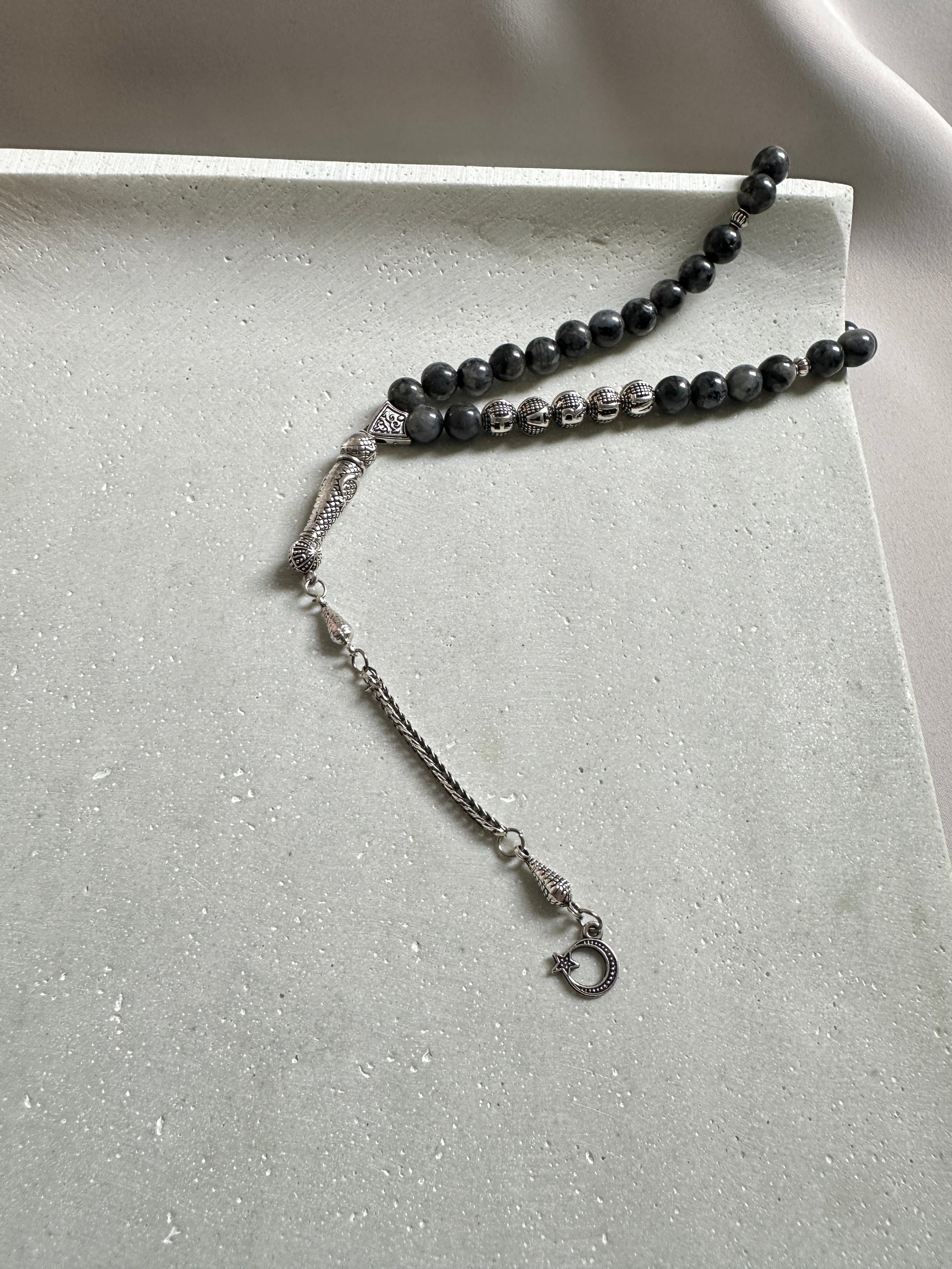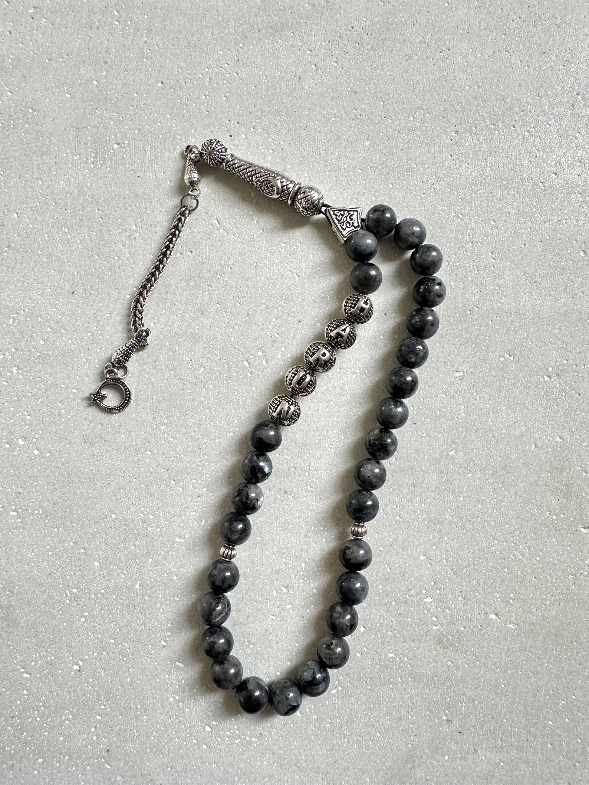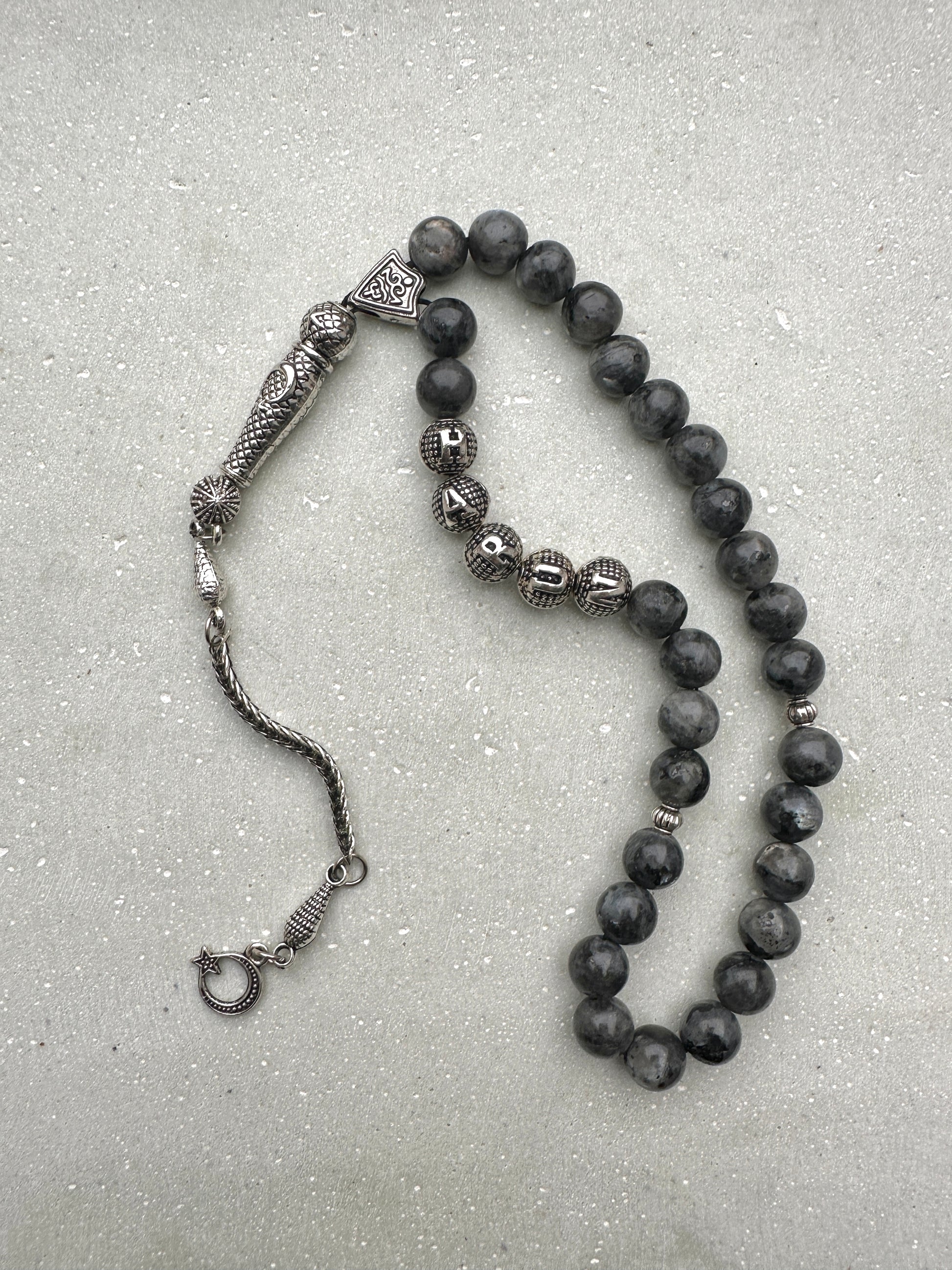 Tesbih mit Namen aus Naturstein - Labradorit - anthrazit