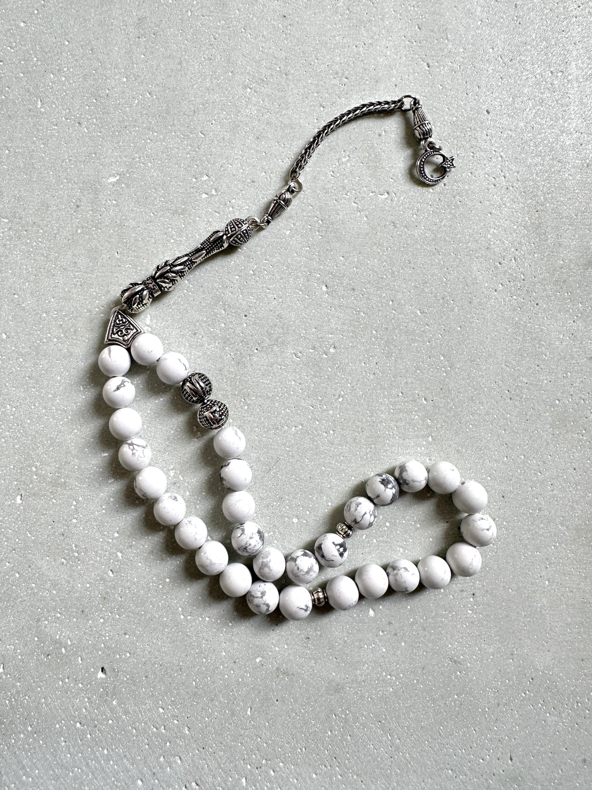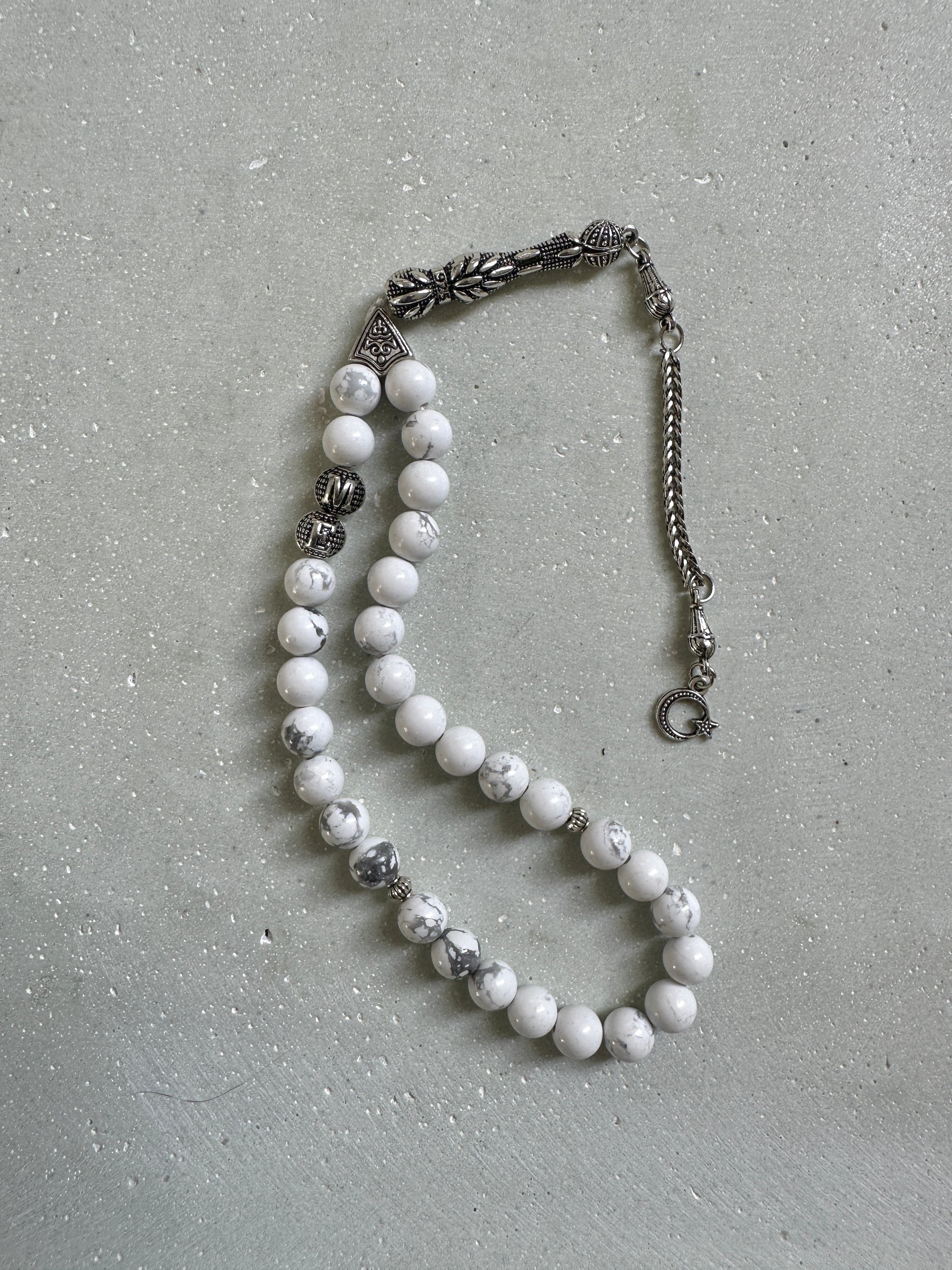 Tesbih mit Namen aus Naturstein - Magnesit - marmor glänzend